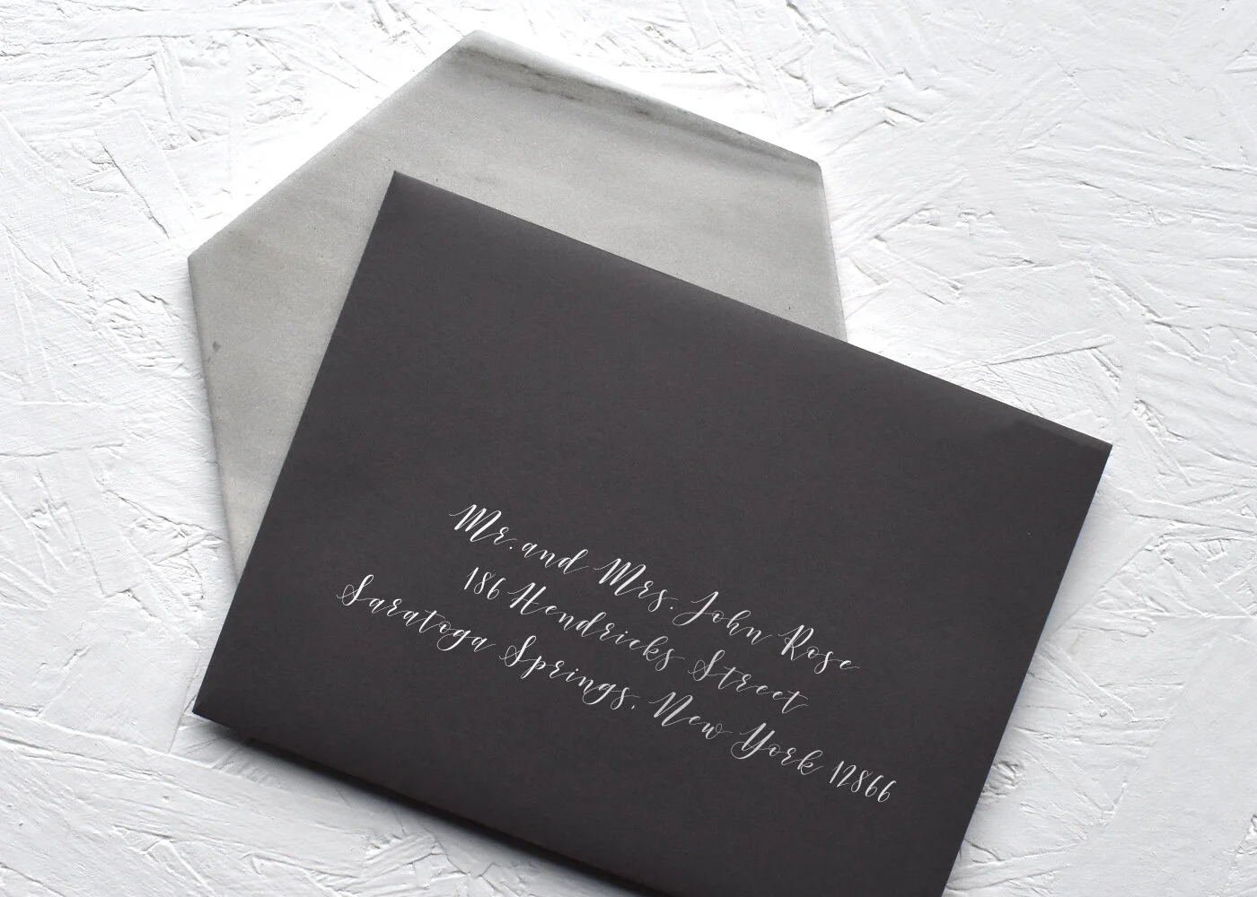 If your suite contains an envelope liner (ie. those fancy envelope flaps above), I recommend including it on an unsealed inner envelope.